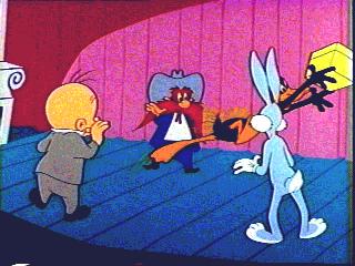 Bugs has been unexpectedly put at the center of "America's most talked-about program" by the show's emcee, Elmer; he also has to worry about Daffy, who is convinced that he was meant to be the guest on the show. Sam's appearance in this one is very brief.