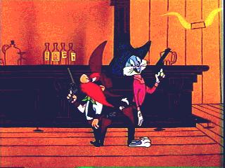 A "Gunfight at the U.P.A. Corral." with very attractive stylized settings and some of the old Bugs-Sam vinegar. Ends on a duel with trains.