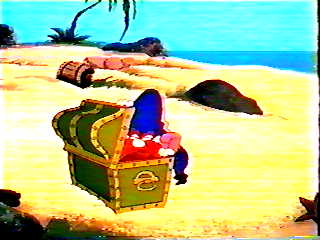Bugs appears briefly on Daffy's island to introduce footage from "Mutiny On The Bunny".