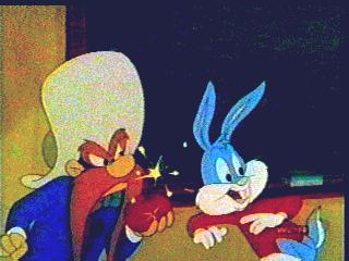 Notable is Buster Bunny disguising himself as Yosemite Sam to fool "Montana