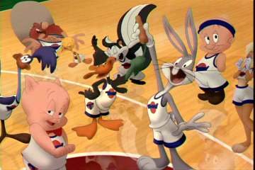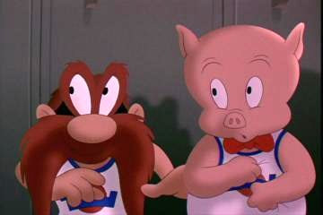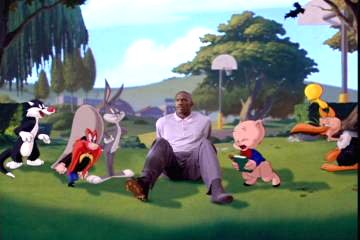Michael Jordan is lassoed by Sam and brought into the Looney Tunes world.