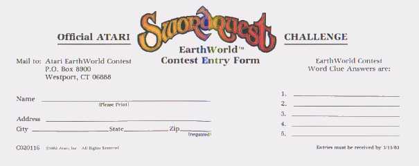 clues," your entry will be acknowledge with an OFFICIAL ATARI SWORDQUEST