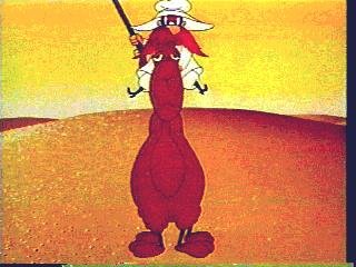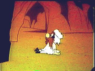 Sam has three chances in Hell to bring Bugs to the Devil and gain his freedom: a wrap-around concept re-using footage from Hare Lift, Roman Legion Hare, and Sahara Hare. (Not Available on Video)