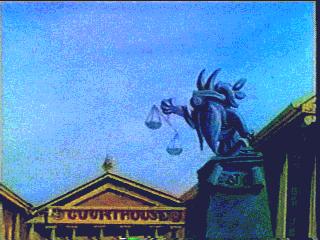 Sam plays the "Hangin' Judge Sam" in "Toon Court" (a takeoff of
