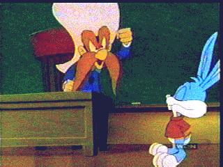 the highway. Yosemite Sam tries to run the turtle over with his Texas longhorn